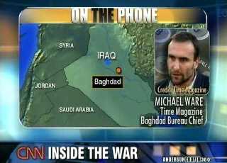 Anderson speaks to Michael in Baghdad via telephone.