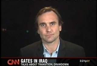 Domestic coverage of the Gates visit spanning several hours: 7pm, 8pm, and 11pm Baghdad time. In the first, Michael gives some details of the logistics of the trip, while in the second we see a brief clip of Gates addressing troops at Balad airbase. The third clip is a recorded recap.