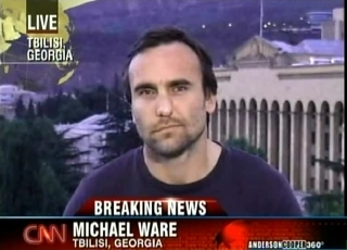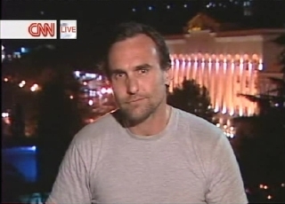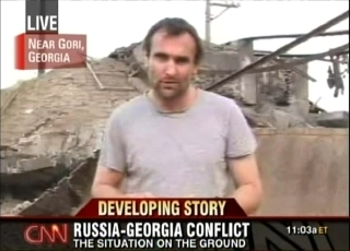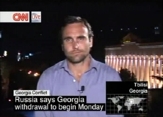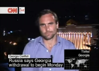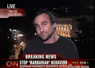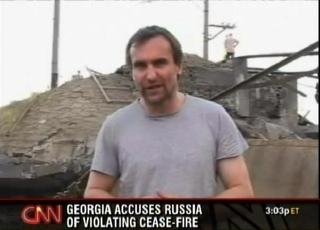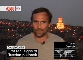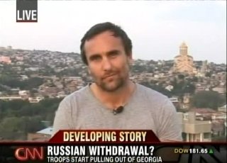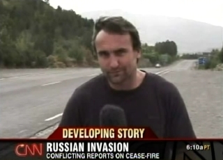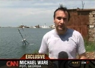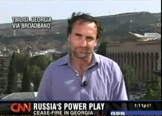2 a.m. During a live special on the crisis in Georgia, Michael tells Jim Clancy about the trip to Poti (including the prepared clip) but then updates that the Russian army is moving out of the port city; however, about 30km outside Poti, he and his team passed through a location where the Russians have dug in with heavy artillery.