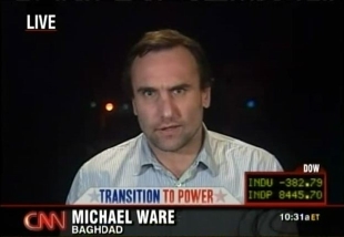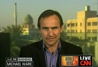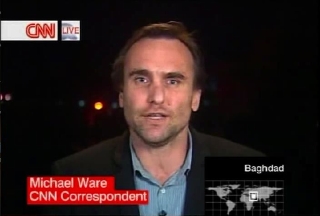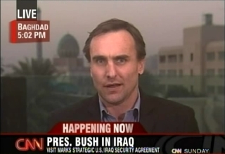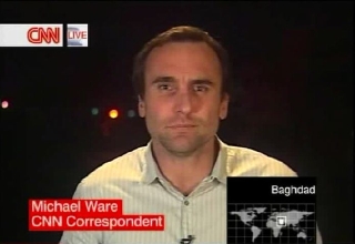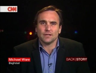 Four more NewsRoom appearances: first is with Betty Nguyen at 8pm Baghdad time; second is pre-recorded; third is with TJ Holmes at 10pm Baghdad time (there is a brief transmission glitch during this one); and fourth with Rick Sanchez at 11pm Baghdad time.