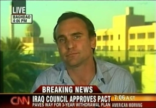 Michael was on American Morning to discuss the formal end of the SoFA negotiations -- the Presidential Council signed the agreement, as was expected. He lays out some of the details that will tie the hands of the next administration and give the Iraqi government full control of the war.