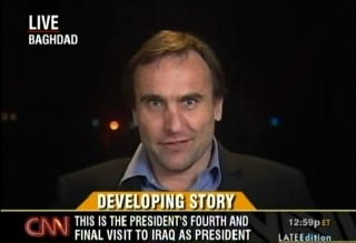 6pm Baghdad time: Michael speaks with Heidi Collins about the reactions on the Iraqi street. 8pm Baghdad time: Michael covers the same with Betty Nguyen and also goes on to discuss how the television station the journalist works for is supporting his release and why the Iraqis are looking to charge the man with throwing the shoes in the general direction of PM Maliki.