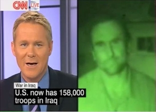 Michael reacts to President Bush's speech on the anniversary of the start of the war. The satellite feed is lost during this; they were unable to get back to him before the end of the program.