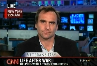 As CNN recognizes Veterans Day, Michael was on NewsRoom briefly to introduce his piece on David Bellavia. (Since the piece is available here already, these are just his before/after clips.) He definitely stumbles right out of the gate, although it's pretty obvious what he intended to say.