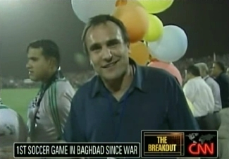 The former rugby player gives us a glimpse at football in Iraq -- the first international match played in Baghdad since before the war began. For a country that is football-crazy this is a huge event, and for the people who came out to watch the home team win the match 4-0 this was a day to enjoy a glimpse of normality.