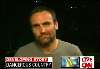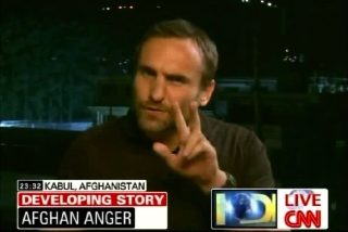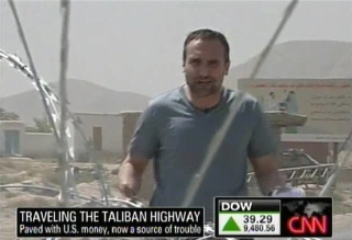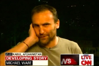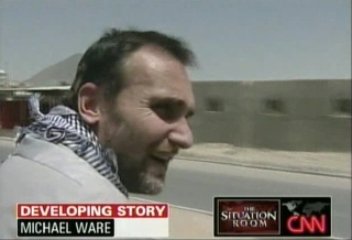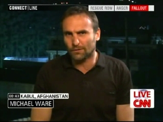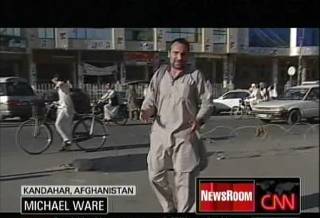 Isha Sesay talks to Michael about the situation in Afghanistan and last week's close call in Kandahar. (And whoever chose the B-roll to play while he's talking clearly did not use stuff his team had shot -- as he's describing going out without the safety of being embedded with the military, we're watching military patrols...)