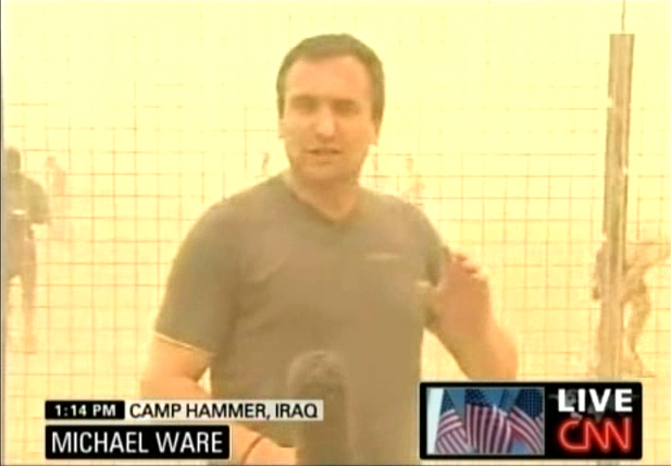 The sandstorm in Iraq continues, and Michael spends the day with the troops at Forward Operating Base Hammer. There is a softball tournament underway and a good time being had by all.