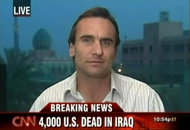 It's just before 6 a.m. in Baghdad, and Rick Sanchez asks Michael to comment on the US death toll in Iraq topping the 4,000 mark. The woman who joins the conversation is Martha Zoller, one of three women Rick had been talking to about Iraq. She makes a valid point as far as not wanting to make the number more important than the lives lost (surely whoever was #3,999 is grieved for just as deeply!) but anyone who thinks that a milestone like that isn't going to be commented upon is just kidding themselves.